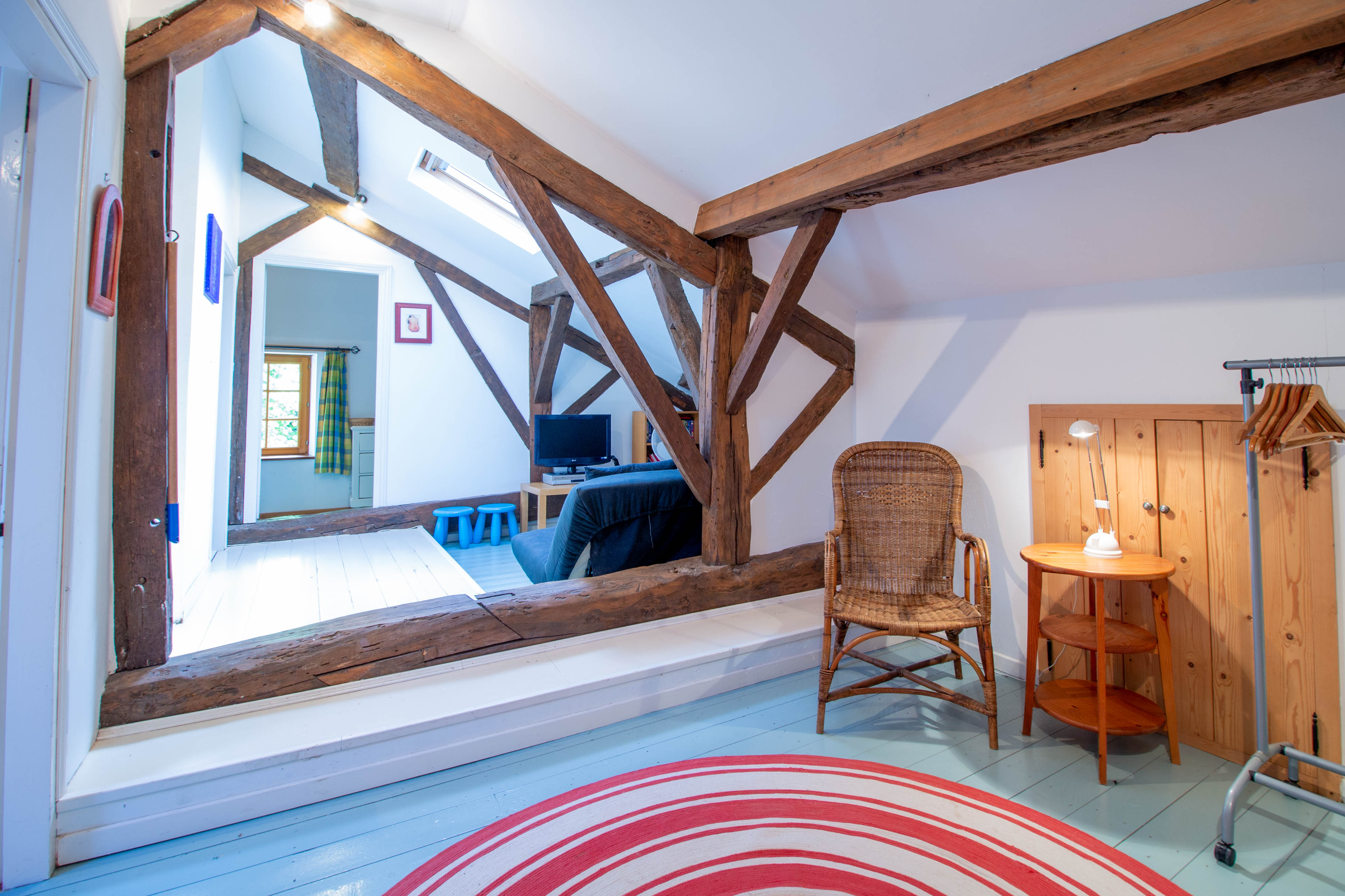 Upstairs with it's exposed beams there are three further bedrooms - a double and two twin rooms. There's a family bathroom, too.