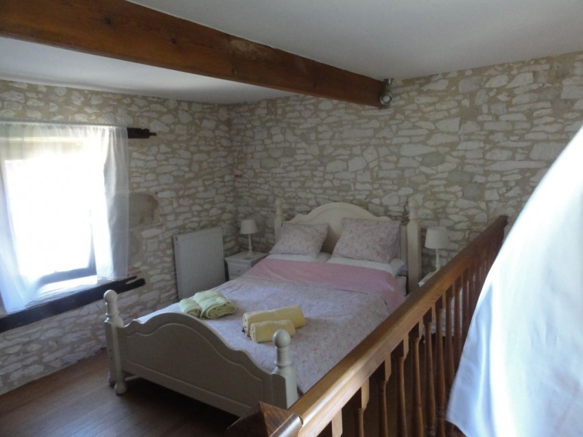 Back in the house and up the stairs you will find a double bedroom on the mezzanine - in the tower of the pigeonnier itself. It's just made for romance!