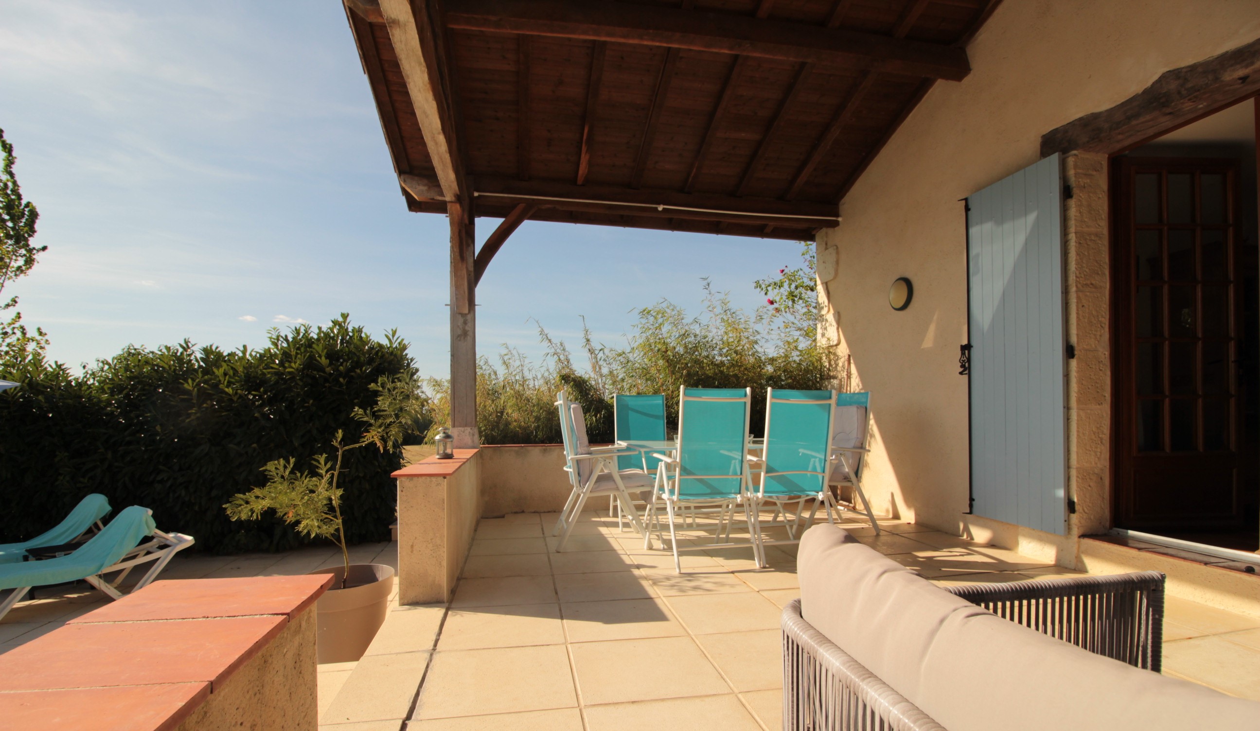 There's a beautiful and large raised terrasse with sofas, barbeque and a dining table... and then there's the pool.